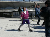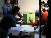 その後、駒沢オリンピック公園に移動して2作品(“ヘッドフォン”篇、“砲丸投げ”篇/左2点)を撮影。ロケバスの中で昼食をとり、午後からはハウススタジオに移動して、残り5タイプ(“将棋”篇、“ろくろ”篇、“エステ”篇、“マウス”篇/下4点)を一気に撮影。