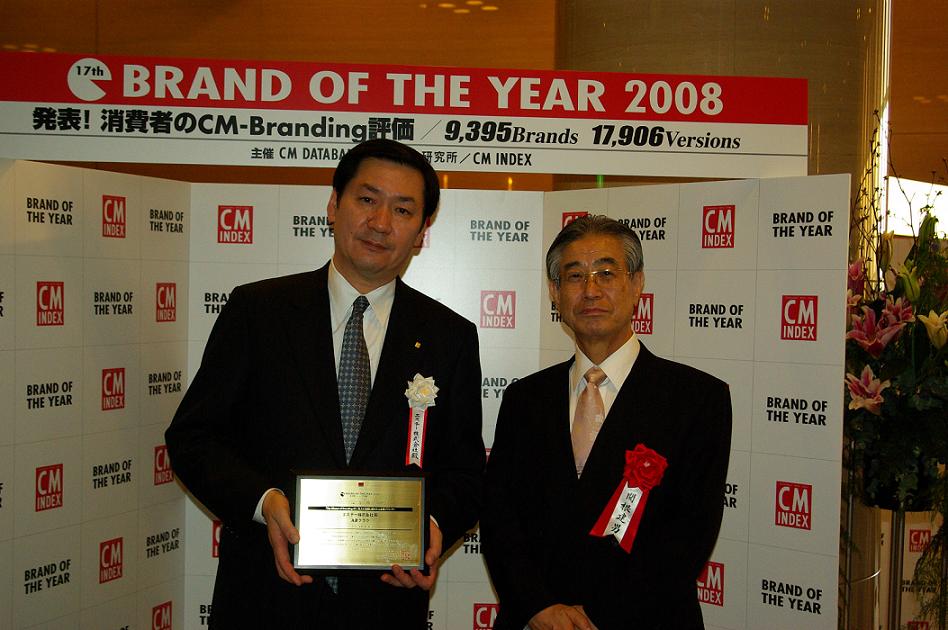 *1 「BRAND OF THE YEAR 2008」は、2007年11月度から2008年10月度までにオンエアされた2,013社/9,395銘柄/17,906編の全CMから、月例3,000人の消費者が示した反応と評価の記録をもとに、、 、(Brand試用意向度) 、 の4指標で評価し選定されます。