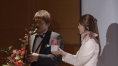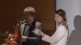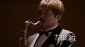 セレモニーは粛々と進行され、壇上では"思い出の会"CMシリーズに出演したサックス奏者の吉田治さんが生演奏を披露しています。吉田さんは司会の女性に構わず演奏を続け、司会者もそれに動じず進行をこなすなど、微妙なおかしさの漂うCMとなりました。