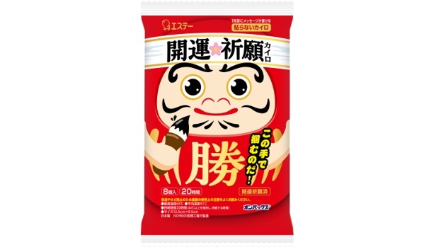 エステー株式会社は、製造工場で開運祈願を実施した縁起の良い“お守りカイロ”「オンパックス 開運祈願 貼らないカイロ」を11月11日から全国のスーパー、ドラッグストア、ホームセンター、ネットショップなどで数量限定品として新発売します。