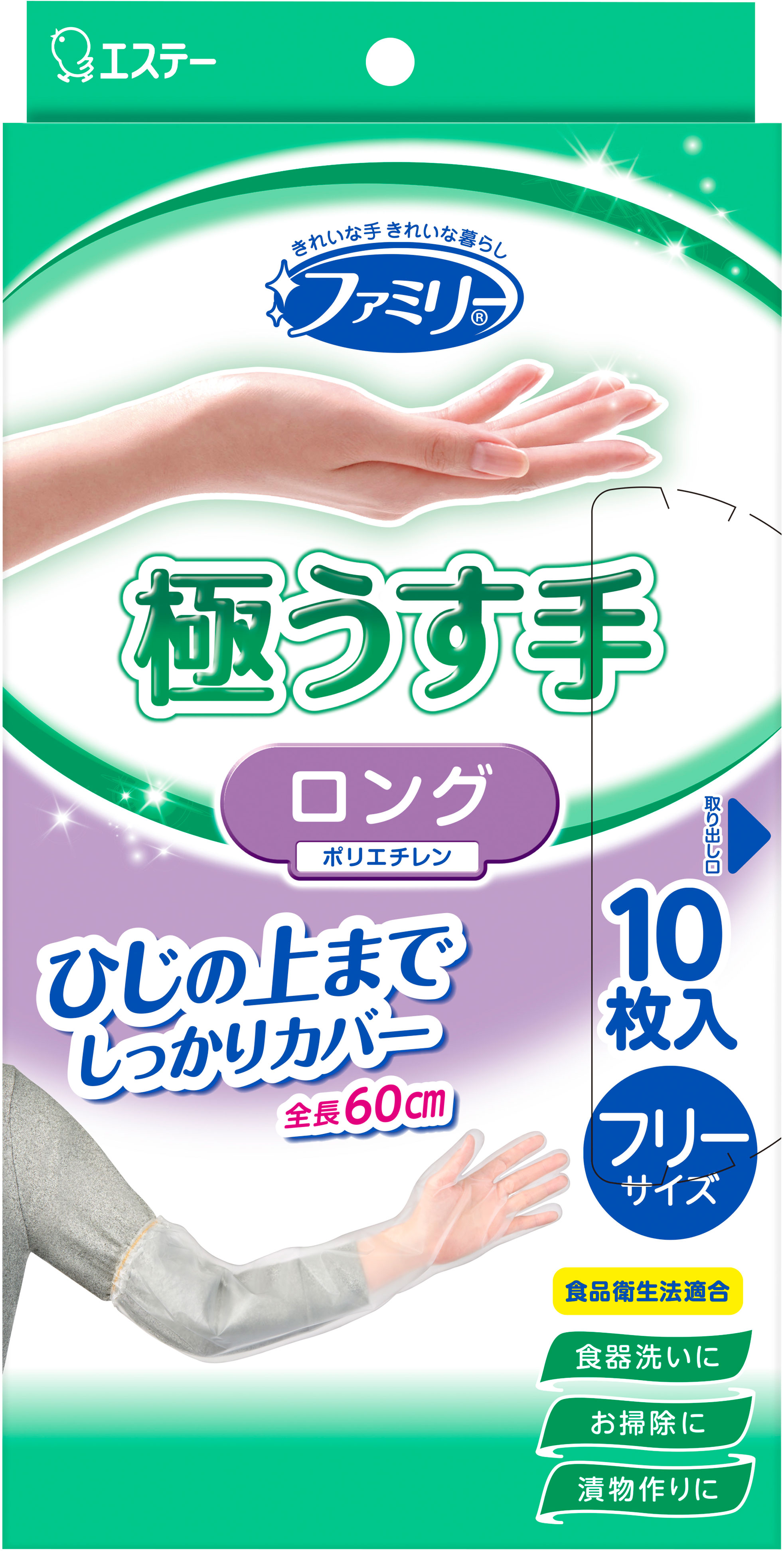 ひじ上までカバーするロングタイプの使いきり手袋「ファミリー ポリエチレン 極うす手 ロング」を新発売