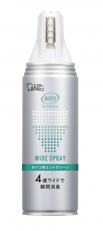 また2021年10月に発売した、4連ワイドノズルで気になるニオイを瞬間消臭する「消臭力 業務用 ワイドスプレー」は、パッケージのリニューアルを実施します。香りは<無香性>と<タバコ用ミントグリーン>の2種類で、価格はオープンですが、それぞれ実勢価格は税込み767円前後の見込みです。3月から順次、新パッケージに切り替わります。