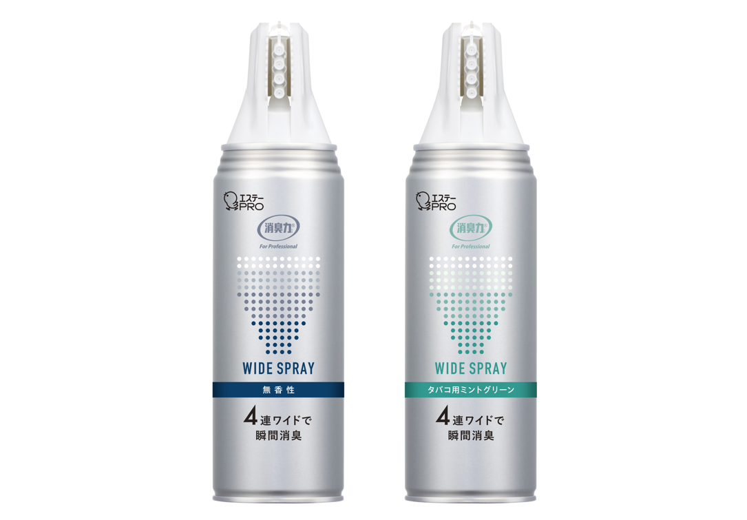 消臭成分を約5m先まで"ジェット噴射"! 客室や会議室などの広い空間を効果的に消臭するスプレー 「消臭力 業務用 ロングジェット」を新発売 ~「消臭力 業務用 ワイドスプレー」は本体デザインをリニューアル~