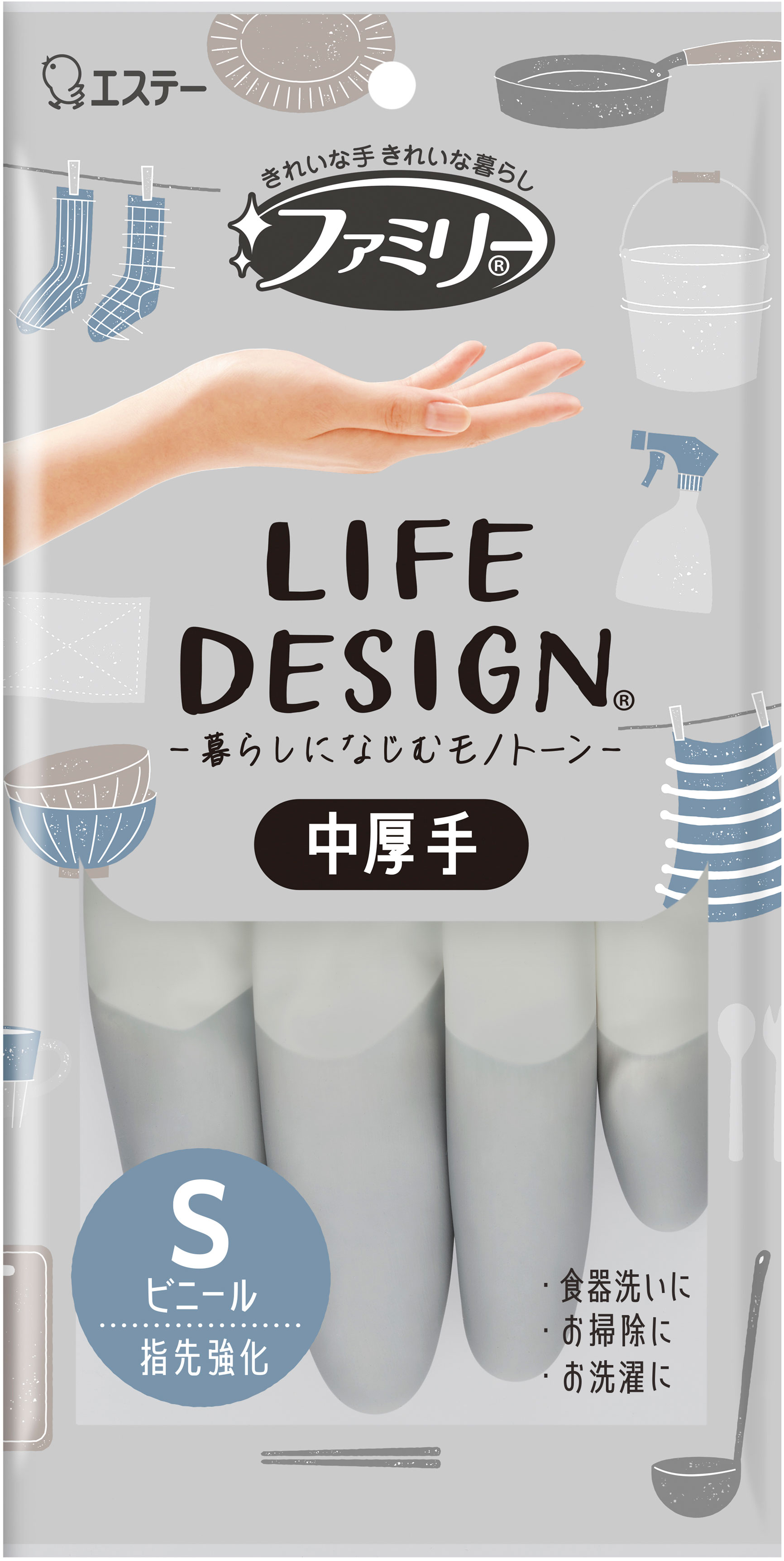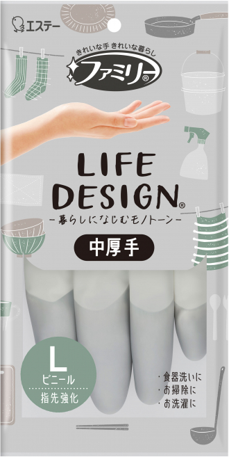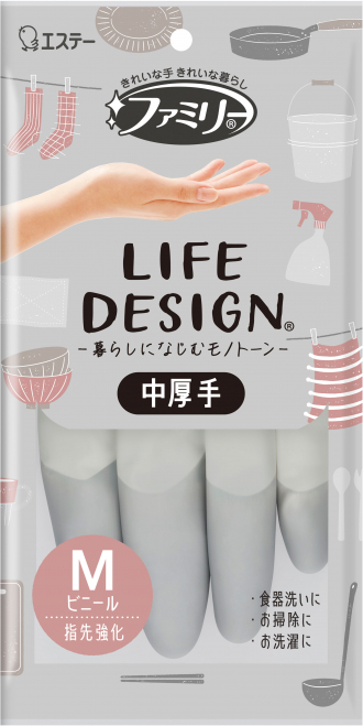 モノトーンカラーで暮らしになじむ中厚手タイプの家庭用手袋 「ファミリー ビニール 中厚手 ライフデザイン」を新発売