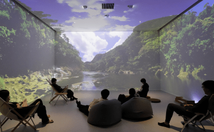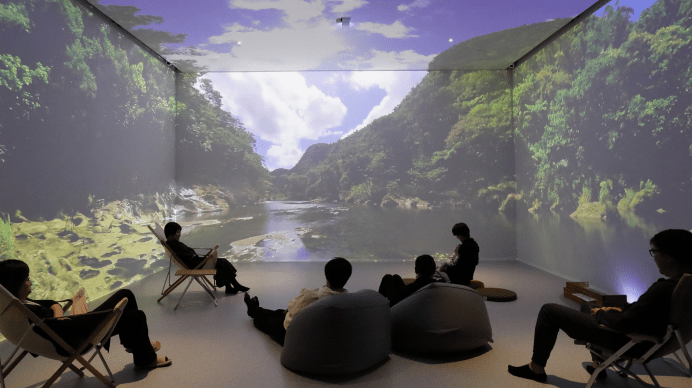 業務用ディフューザー設置によるかおり空間演出はもちろんバーチャル森林浴など「映像×音×かおり」でイマーシブ空間を実現いたします。